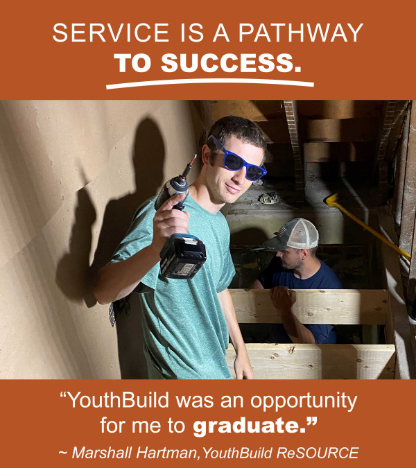 “Traditional learning isn’t for everyone,” said Hartman. “YouthBuild was an opportunity for me to graduate, which at the time didn’t seem possible, while learning trade skills and helping my community. I feel very fortunate.”